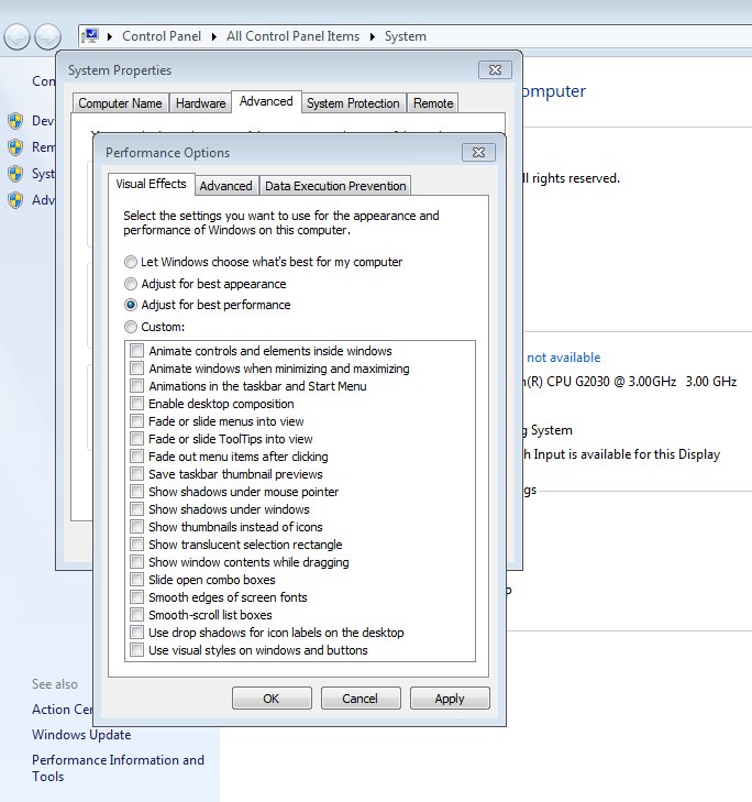 To incapacitate these and change for best execution simply go to framework properties and snap progressed properties. Check the alternative of modifying for best execution and snap alright.